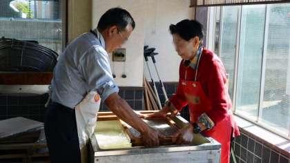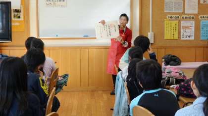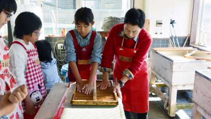 紙すきを指導して下さる工芸室の先生は、子どもたちの手を取って、ていねいに紙すきの補助をしてくださいました。今日は担任も紙すきに挑戦しました。最後にランチルームで先生のお話を聞いて、お礼を述べ、工芸室を後にしました。工芸室の皆さん、2日間にわたり、ご指導ありがとうございました。