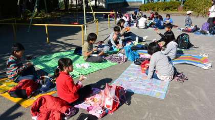 浅草からバスに乗り、文京区にある水道歴史館にむかいました。まずは腹ごしらえ、歴史館の裏手にある給水場公園で、家からもってきたお弁当を食べました。公園でお昼休みをくつろぐ一般の人たちに迷惑をかけないよう、しっかり気をつかっていた子どもたち、かわいいですね。昼食後はいよいよ水道歴史館の見学です。4年生は水道キャラバンの出前授業もうけているので、関心は高く、説明員の方のお話に興味津々です。