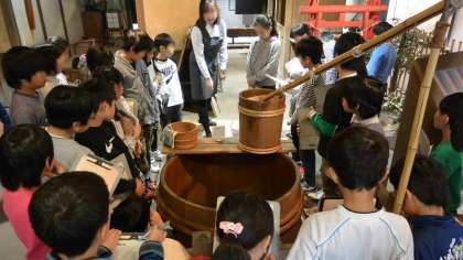 前半は江戸時代の水道について学びました。玉川上水を作るときの苦労や、江戸の町の水道の巧みさ、当時使っていた木樋などの実物を見て感心していました。後半は明治時代以降の東京の水道について学びました。人口が急激に増えた東京で、先人の苦労や工夫、努力を知り、今の便利な生活があることを知りました。