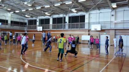 17日(日)午後、船橋希望中学校おやじの会主催の「ソフトバレーボール大会」が、中学校の体育館で行われました。本校からも親父さんたちと校長、教員が出場し、2チームで戦いを繰り広げました。本校の子どもたちや、本校バレーボール部のお母さん、PTAの皆さんも審判や応援に駆けつけてくださり、おおいに盛り上がりました。結果は12チーム中4位と7位ということで、上々の成績をおさめることができました。こういう積み重ねで、学校が盛り上がっていきますね。参加いただいた皆様、応援していただいた皆様、ありがとうございます。