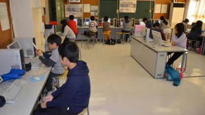 パソコンクラブは、調べたことを発表していました。21台あるパソコンに共有のデータを映し出せる機能を使って、互いが調べてまとめたことを自分の前のパソコンで見合っているという、一見不思議な発表会です。発表の内容は、自分が興味をもった事柄を、みんな上手にまとめていました。
