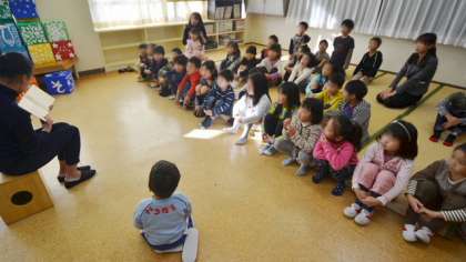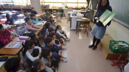朝夕めっきり冷え込むようになり、日暮れも早くなりました。灯火親しむ秋、読書の秋です。20日朝の読書タイム、1年1組、2組の読み聞かせのようすです。読んでくださる保護者の方の一言一言に反応し、ほんの世界を楽しんでいる子どもたちです。