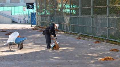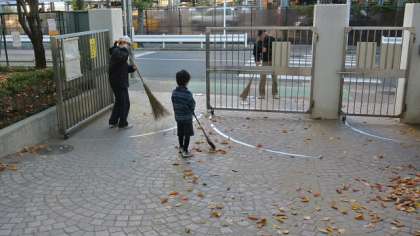 日に日に秋の気配が深まっていく今日この頃、学校の木々も紅葉し、落葉が始まりました。この時期大変なのは落ち葉はきです。毎日の主事の仕事が日課になっています。今朝早く登校してきた1年生が手伝ってくれました。