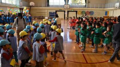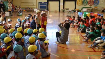 幼稚園、保育園の園児からも感想を言ってもらいました。みんな「◯◯がたのしかったです」と言ってもらって、そのたびにうんうんとうなずいて喜ぶ1・2年生でした。最後に一緒に「さんぽ」を歌いました。毎年恒例で行っている「わくわくフェスティバル」。40周年行事の直後で、準備も大変でしたが、みんなよく頑張って今年も大成功でした。学校を訪ねて下さった八幡山幼稚園、船橋西保育園、ひだまり保育園の皆さん、ありがとうございました。