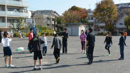 今週金曜日の体育集会に備えて、中休み、体育委員がなわとびの練習と打ち合わせをしました。来週から始まる「なわとび週間」に向けて、全校児童に、なわとびの見本を見せるためです。