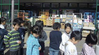 29日(金)、2年生が生活科の学習で「まちたんけん」に出かけました。この日は、近隣の商店街の見学です。スーパーマーケットや専門店、飲食店がならぶようすを見学してきました。