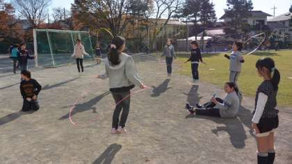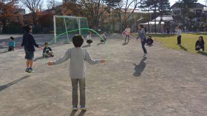 3日昼休み、5年生がクラス遊びとして、なわとび週間ということもあり、全員でなわとびをしていました。暖かい日差しを浴びながら、元気に運動する子どもたちです。