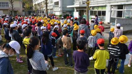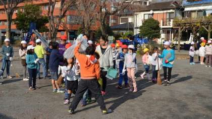 4日5校時、全校児童が参加して「地域美化タイム」を行いました。日頃自分たちが使っている公園や通学路などの清掃活動をすることによって、地域への関心を高めるとともに、地域の一員としての自覚や地域貢献の大切さを意識させることを目標としています。校庭で、希望っ子班ごとに並んだ子どもたちに、活動の手順を説明した後、それぞれの分担箇所に向かい、班長さんが班員に指示を出して作業のスタートです。