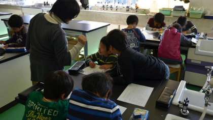 新寺子屋には、保護者の方も手伝い当番として入っていただいて、プリントの丸付けをしていただいています。学習の成果がすぐわかることも、子どもたちにとっては学習する励みとなっています。また、わからないことがあればすぐ聞くことができるのがよいところです。学ぶ意欲にあふれた子どもたちが集まっています。