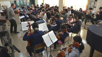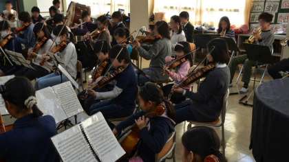 7日(土)の「子どもぶんか村 音楽くらぶ ジュニアオーケストラ」の練習のようすです。12月15日に行われる「音楽くらぶコンサート」にむけて熱心に練習していました。地域の小学生、中学生、高校生も所属し、講師の先生も混じって演奏します。コンサートが楽しみです。
