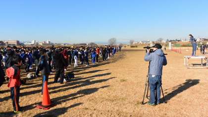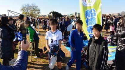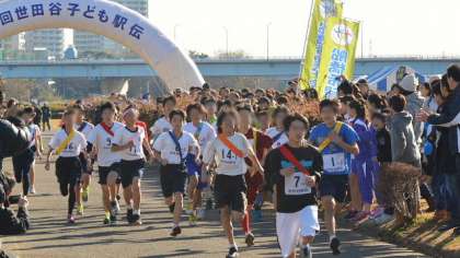 15日(日)午前、世田谷子ども駅伝が行われました。船橋希望学舎も小学生・中学生合同の男女1チームずつが出場し、本校の6年男子も選手に「なりました。快晴の二子玉川緑地運動場。開会式と合同ウォーミングアップの後、いよいよスタート。区内の「学び舎」チームがスタートです。小学生6人、中学生4人の10人がたすきをつなぎます。小学生は一区が1キロ、中学生は2キロです。第1走者は中学生です。