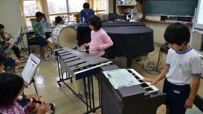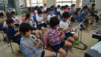 19日、3年生の音楽の授業のようすです。交代でキーボードや打楽器を担当し、リコーダーの合奏をしていました。互いに教えあった成果が出て、上手に演奏できていました。最後は元気よくしかも美しい声で歌って授業を終わりました。