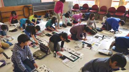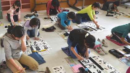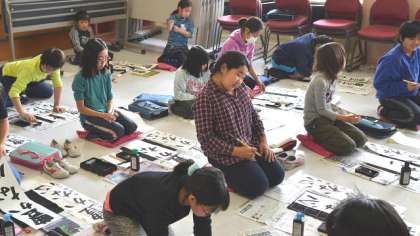 3学期はじめに書き初めと「書き初め展」を行います。それに向けて5年生が練習をしていました。みんな落ち着いた雰囲気の中で、白い紙に「豊かな心」の文字を書いていました。