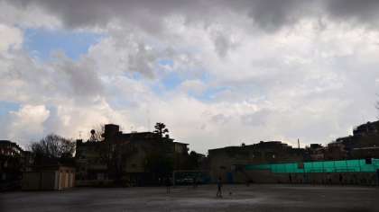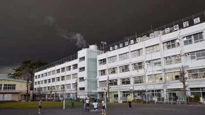 午後1時頃、雨が上がって校庭の水たまりが少なくなったので、外遊びができました。遊びに出てきた子が空を見上げています。北西方向の空が真っ暗に!・・・南西方向は白い雲と一部青空が見えていました。15分くらいたつと北西方向は少し黄色がかった空の色に変わりました。北西方向から厚い雲が通り過ぎていったようですね。