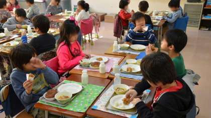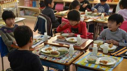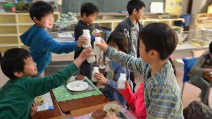 2年生の給食のようすです。2学期の給食無事終了を祝って「かんぱーい」? 人気は表面はカリカリで中身はジューシーな骨付きの唐揚げでした。美味しそうに食べる子どもたち。満足でしょう。3学期もおいしい給食を提供しますからお楽しみに。