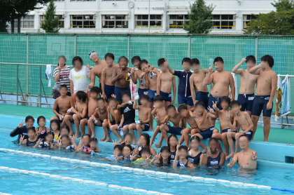 25m×8人、50m×4人リレーもがんばりました。特に5年生の男子は人数が少ないため、全員でがんばりました。6年生は最後に全員で記念撮影をしました。