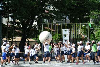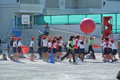 赤も白も力いっぱい、力を合わせてがんばり、大玉送りは大接戦となりました。