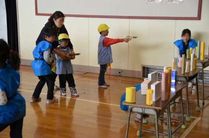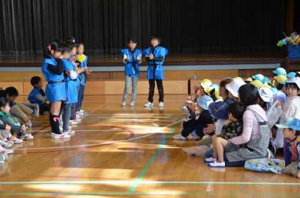 1・2年生は、近隣の保育園児、幼稚園児を招いて「わくわくフェスティバル」を行いました。1・2年生が自分たちで考えたゲームコーナーをつくって園児に遊んでもらう企画です。毎年恒例になっています。2年生は「希望っ子まつり」で経験していますが1年生がおもてなしをする立場になったのはこれが最初でしたがよく頑張っていました。