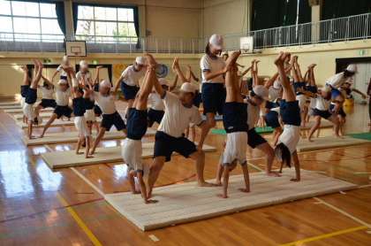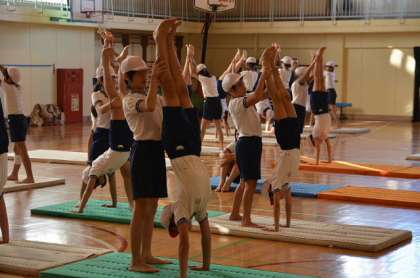 6日保護者会の日、6年生が体育の時間に練習してきた組体操を披露しました。短期間でよくがんばり見事な動きで、参観に訪れた保護者の皆さんから大きな拍手をいただきました。