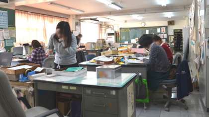 7日(火)、朝から冷え込みが厳しく、日差しはあっても気温の低い一日になりました。校庭の木々や花も寒さにじっと耐えているようすでした。明日は始業式。3学期が始まります。今日の職員室は明日からの授業開始に備えて朝から活気にあふれていました。