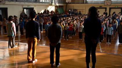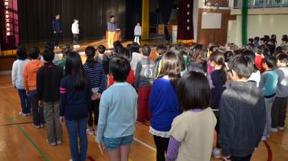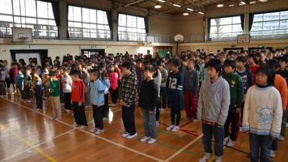 1月8日(水)、今日から3学期のスタート。体育館で始業式を行いました。ここのところの冷え込みで寒い体育館。その中で姿勢良く整列した子どもたち。最初に児童代表4人の新年の抱負です。どの子も去年の自分を振り返って課題をふまえ、今年度努力しようと思っていることをしっかりとした口調で原稿なしで述べました。すばらしいですね。中には話している途中で思い出すために間が開いてしまった子もいましたが、聞いている子どもたちは温かい目で見守り、しっかり聞いていました。これもすばらしいことです。希望っ子たちの3学期スタートは上々です。
