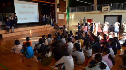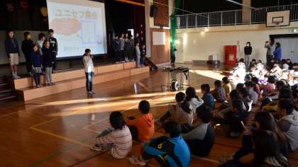 10日(金)朝、体育館で「ユニセフ集会」を行いました。児童会運営委員と代表委員が中心になって進めるユニセフ募金活動について、全校児童に呼びかける集会です。子どもたちの発案で、世界中の子どもの数が希望丘小学校の人数だったら・・・ということで、病気に苦しんでいる子どもの数や、食事を満足にとれていない数などを各学年の児童数にあてはめてみました。最後の中学校にいけない子どもの数・・・ということでなんと全校児童の半分以上ということがわかり、子どもたちはびっくり。日本では当たり前の健康で豊かな生活が、国によっては当たり前ではないことを知るよい機会になりました。明日11日から1週間、玄関先に運営委員と代表委員の児童が募金活動をしますので、ぜひご協力ください。