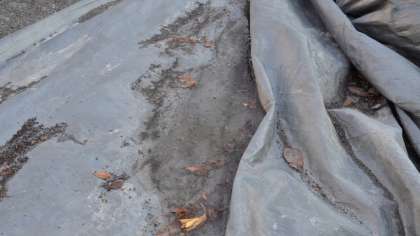 11日、今朝も冷え込みが厳しく、朝の見回りをしていたところ、砂場のカバーにたまっていた水たまりがカチカチに凍っていました。