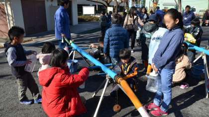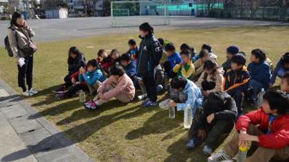 見学を終えて、給水訓練を行いました。家からもってきたペットボトルや大きな水筒に、給水所の水槽からポンプでくみ上げた水を蛇口から一人一人汲んで、家に持ち帰ります。学校に戻って、芝生で今日の見学や訓練について感想を聞き終了です。去年も見学していますが、今回は学年だけでしっかりと時間をかけて見学したので、水の大切さや給水所のしくみがよくわかったという感想が聞かれました。この訓練のためにお骨折りいただいた区の関係者、避難所運営委員会の皆様に感謝いたします。