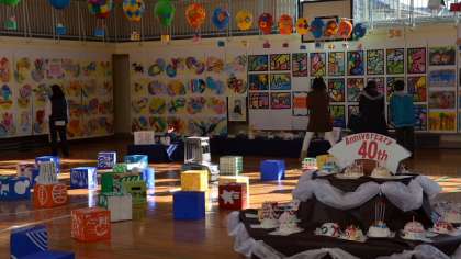 18日、開校40周年記念希望っ子展覧会2日目は、一般鑑賞日です。朝9時の開場から保護者、家族の皆さんや地域の皆さんが訪れ、子どもたちの作品を見てくださいました。