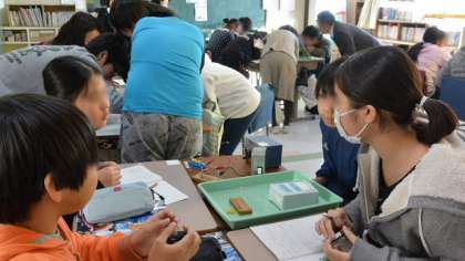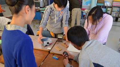 6年1組の授業のようすです。6年生は2くらすとも「電気の利用」の学習で、6年1組教室で「電流による発熱」を調べました。電流や電熱線と発熱量の関係を調べる実験をして、結果を考察しました。グループで役割分担しながら、正確に調べる努力をしていました。