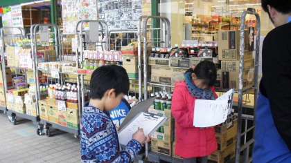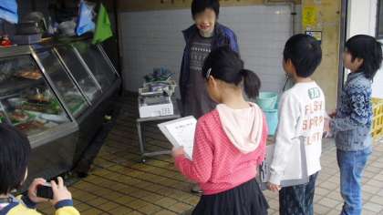 30日、今日は2年生も校外学習をしました。生活科の「街たんけん」です。近くの団地の商店街に出かけて、お店をまわって子どもたちがインタビューをしました。