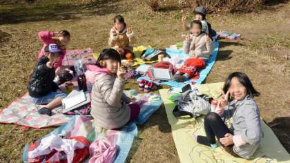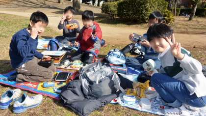 再びバスに乗り、次太夫堀公園に行きました。ここは民家園になっています。古民家の見学の前に昼食をとりました。家から持ってきたお弁当を食べました。気温は低かったのですが、日当たりのよいところで、家から持ってきたお弁当を広げ、おいしくいただきました。