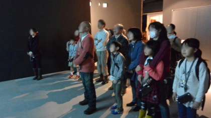 その後、大きな揺れで建物がどのようになるかを試験した映像や、避難所運営に関わる展示物、被災時を想定したアニメーションドラマなどを参加者みんなで見ました。インパクトのある映像に、震災に備える気持ちを新たにしました。