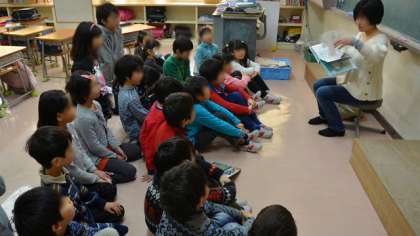 12日(水)、朝は読書タイムです。今年度から火・水・木曜日の朝に行っている読書タイム。水曜日は読み聞かせの時間にしているクラスが多くあります。今日も1年の2クラス、2年、5年で保護者の方が読み聞かせをしてくださいました。いつものことですが、保護者の方々が、毎回子どもたちの興味をひくような本を選んでいます。おかげさまで子どもたちは目をキラキラさせて絵本の世界にはいりこんでいます。