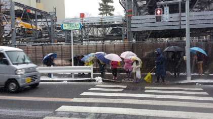 14日(金)、校庭の雪がすっかりとけてよかったと思ったところに再び雪で校庭は真っ白に逆戻りです。朝のうちは道路につもった雪も少なく、普通に歩いてきた子どもたちですが、帰りが心配です。