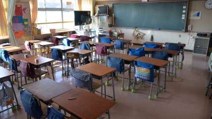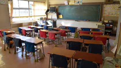 発熱や咳など、インフルエンザ様の症状が出たときは、休養を十分にとって、無理に登校させないようにしてください。また、早めに医療機関の診断を受け、インフルエンザの診断が出た場合は学校に連絡をお願いします。(写真は学級閉鎖で子どもがいない2年1組と4年1組の教室です。がらんとして寂しいですね。)校長:千葉