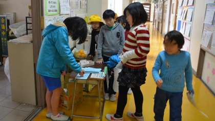 20日、エコ活動に、PTAのベルマーク委員会も協力してくださって、牛乳パックを持ってきてくれた児童へのトイレットペーパー配布を昼休みに行いました。(・・・といっても、ある特定のメーカーが作っている牛乳パックに限られるのですが・・・)本校では子どもたちのエコ活動も「エコ委員会」が中心になって進めています。今日も委員会の児童が、ペットボトルキャップと牛乳パックの回収作業をしました。学校全体で回収数量を上げようという取り組みを行っています。ぜひご協力ください。