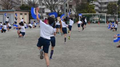 20日5校時、5・6年生が校庭で「みかぐら」の練習をしました。これは、今度の23日(日)に遊び場開放委員会主催で行われる、「おもちつき」のイベントの一つとして披露するための練習です。寒い中みんな一生懸命練習していました。「おもちつき」は、校庭で10時開会で、みかぐらの披露は10時20分を予定しています。6年生が皆さんの前で踊るのもこれが最後となります。また、その後、参加費用300円(来年入学する児童は無料)でつきたてのお餅と豚汁が振る舞われます。餅つきの体験や、お楽しみコーナーもありますので、多くの皆さんのご来場をお待ちしております。