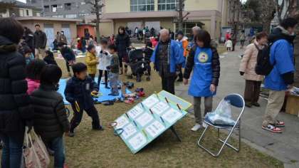 餅つきの間、芝生では野球の「KCレッドジャッカル」、サッカー「グリーンファイターズ」、そして社会福祉協議会の皆さんがさまざまなコーナーを開いて、子どもたちを楽しませんてくれました。