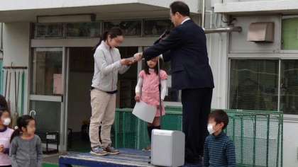 24日(月)の朝会は、校庭の芝生で行いました。日差しがなく肌寒い中でしたが、子どもたちがしっかり整列して話を聞きました。りっぱです。校長講話の後で、世田谷区の読書感想文集「ともしび」に、特選(1年生)と入選(6年生)で掲載された2名の児童を表彰し、惜しくも佳作となった児童を紹介しました。読書感想文集は学校図書館に開架されています。すてきな感想文です。機会がありましたらご覧ください。