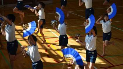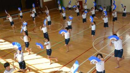 「みかぐら」は、本校の伝統として、6年生が師匠、5年生が弟子となって代々伝えられています。それぞれの学年が踊った後に、一緒に踊る最後の「みかぐら」で、6年生にとっては、本当にこれが最後の踊りです。