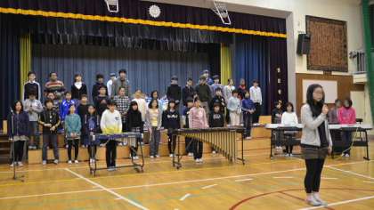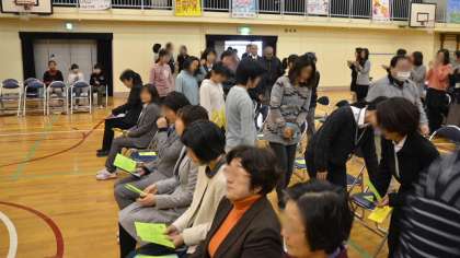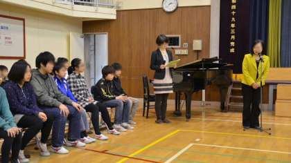 3日(月)、1〜5年生は5校時終了後下校。その後体育館で6年生と保護者の皆さんによる「感謝の会」が開催されました。6年生の案内で本校職員が体育館に入場。保護者の皆さんの拍手で迎えられました。最初に、お忙しいところ駆けつけてくださったお二人のご来賓から、お祝いの言葉をいただきました。お二人とも、小さかった頃の思い出話を語ってくださり、子どもたちの成長した立派な姿をほめてくださいました。続いて6年生による合奏です。