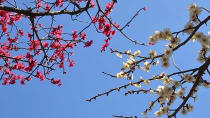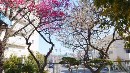 校庭の東側にある紅梅と白梅です。まだ朝夕には気温の低い日がありますが、春は確実に近づいてきていますね。