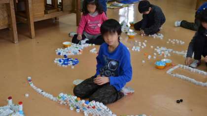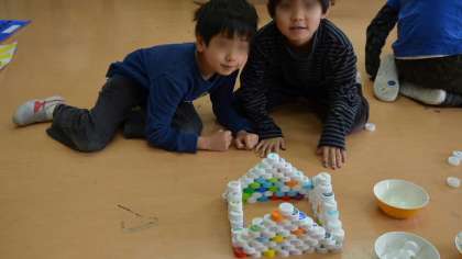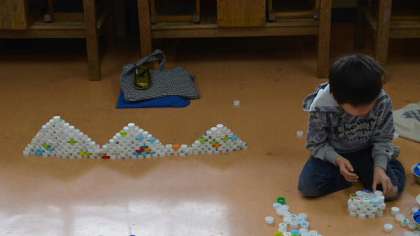 普段は絶対にお目にかかれないほど大量のキャップに子どもたちは大興奮。はりきって思い思いの物を作りました。楽しい思い出になりましたね。