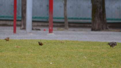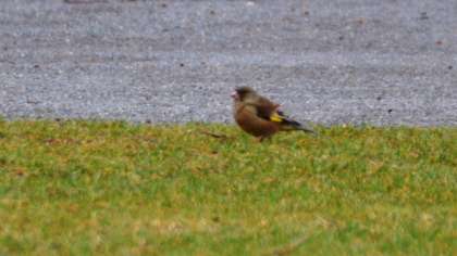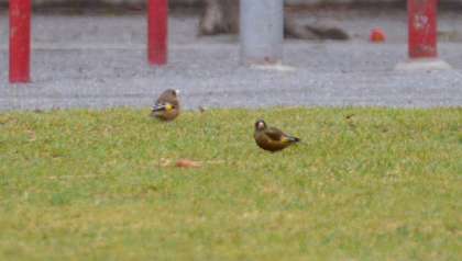 14日朝、昨日昼から降り続いた雨が夜半にはやんでいました。芝生に見なれない鳥がいたので、急いで写真を撮りました。近づけなかったので鮮明な写真が撮れませんでしたが、どうやら「カワラヒワ」一番上の写真で右にいるのがおなじみのムクドリですから、それより一回り小さい鳥です。肌色のくちばしが特徴的ですね。
