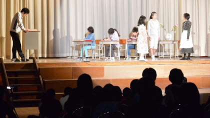 続いての発表は「演劇くらぶ」。実は年度途中から活動を再開したくらぶです。今日は卒業をテーマとした30分以上の劇です。短い練習期間でがんばって仕上げました。本校児童も熱演していました。笑いあり涙ありのすてきな劇でした。