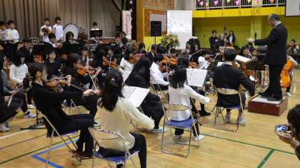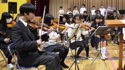 ジュニアオーケストラの発表。最後は全員で2曲演奏して、会場からは大きな拍手がわき起こりました。年々上手になっているのが実感できる演奏でした。