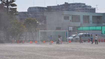 18日(火)、気温がどんどん上がり、10時頃から強風が吹き始めました。春の嵐です。中休み、校庭で遊ぶ子どもたちをおそう春の嵐。でもそれに負けずに元気に遊ぶ子どもたちです。