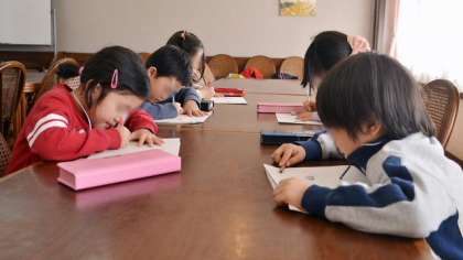 22日(土)、今年度最後の新寺子屋が行われました。連休の中日で出席児童はいつもより少なめでしたが、1〜3年生が参加して熱心に勉強に励んでいました。学習の習慣もしっかり身についていて、自分から進んでプリントなどの学習を進めることができています。