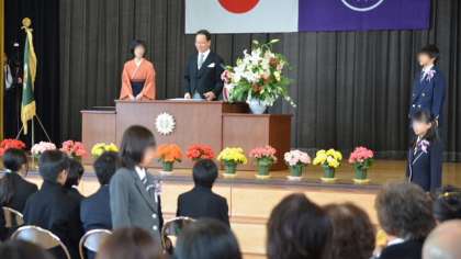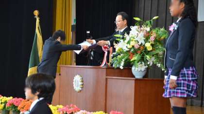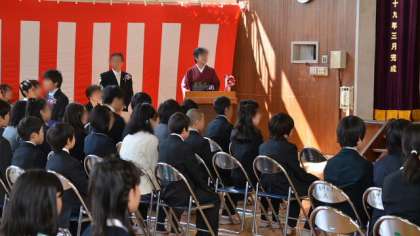 卒業証書授与です。一人ひとり担任から名前を呼ばれると、「はい」と大きな声で返事をして、会場に向かって抱負を述べました。会場の皆さんが、それぞれがの今の思いや将来への夢を堂々と語りました。
